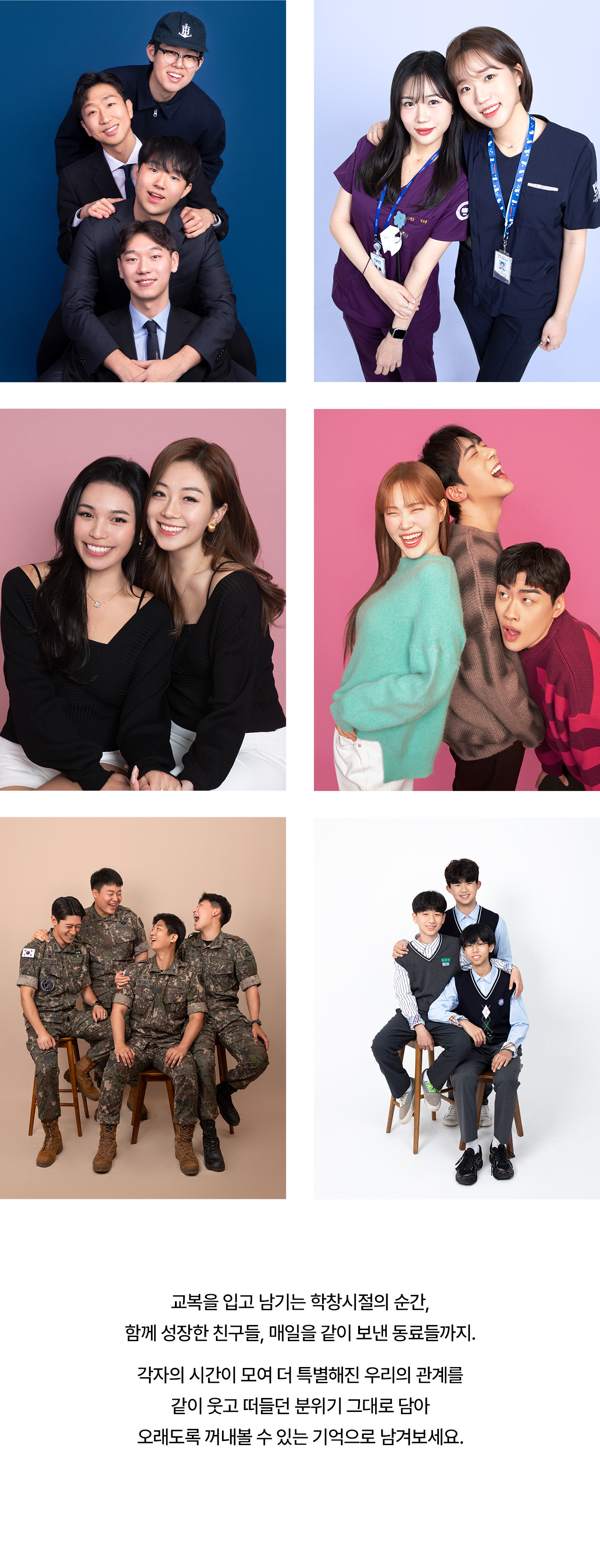 우리만이 보여줄 수 있는 우정케미를 사진으로 남겨보세요.